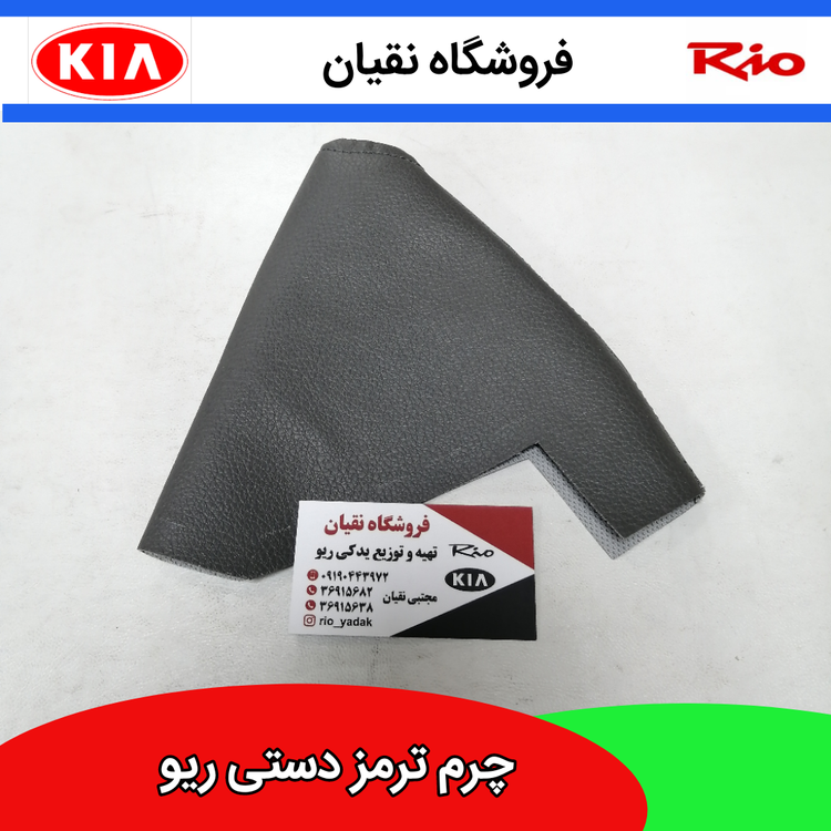 چرم ترمز دستی نه تنها به زیبایی این ترمز دستی افزوده است بلکه مانع لیز خوردن دست در هنگام استفاده میشود. لبه های این کاور به صورت کامل پرداخت شده است و استفاده از چرم درجه یک، نخ های خوب با کیفیت و پرداخت لبه ها سفارشی ساخته شده. چرم ترمز دستی ریو ساخت ایران متریال جنس آلمانی به رنگ طوسی موجود میباشد.